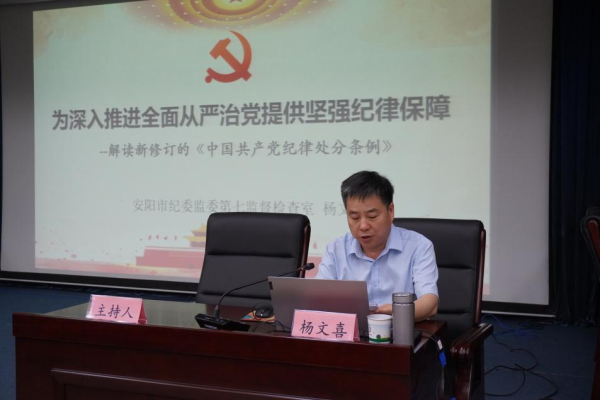 會上,市紀委監(jiān)委第七監(jiān)督檢查室主任楊文喜以“為深入推進全面從嚴治黨提供堅強紀律保障”為題,為集團全體黨員干部解讀新修訂的《中國共產(chǎn)黨紀律處分條例》。主要從《條例》的重要意義、特點、主要內(nèi)容以及如何抓好《條例》的學(xué)習(xí)貫徹執(zhí)行等四個方面進行了詳細講解。