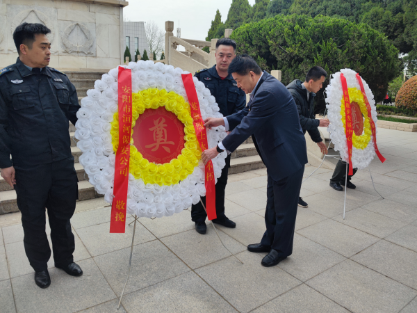 活動現(xiàn)場莊嚴(yán)肅穆,同志們懷著崇敬的心情在革命烈士紀(jì)念碑前整隊肅立、舉行儀式。集體默哀后,張錫軍代表洹河保安公司黨委向革命烈士敬獻(xiàn)了花圈并整理挽聯(lián),表達(dá)了對烈士的崇高敬意。