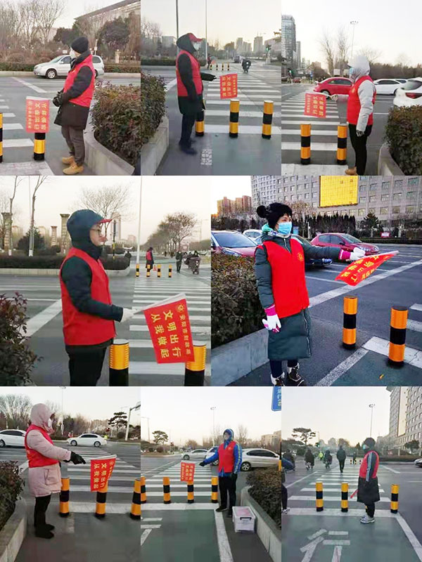 早上7:20分,志愿者們已經(jīng)全部提前到達(dá)集合地點(diǎn)。大家穿戴好統(tǒng)一服裝,手執(zhí)“文明出行 ”指揮旗,協(xié)助交警指引行人按交通信號燈過馬路,禮貌勸阻部分市民騎車不戴頭盔、隨意橫穿馬路、不走斑馬線等交通不文明行為,幫助老、弱、病、殘人員安全通行,為過往行人指路等力所能及的服務(wù)。