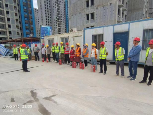 6月6日,光明片區(qū)安置房項目部組織建設(shè)單位、監(jiān)理單位、施工單位相關(guān)人員開展了消防演練。